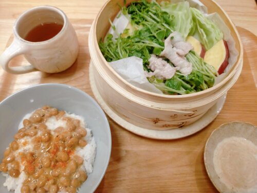 ブログに記事を投稿するとき、いつも納豆ごはんにせいろ蒸しなので、毎日こればっかり食べてると思われるかもしれませんが、せいろ蒸しは久しぶりで、先週はずっと煮物食べてました。